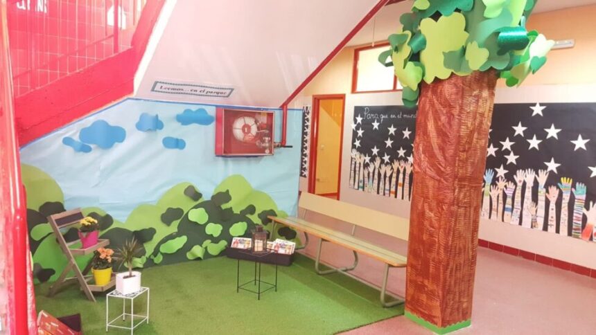 - Zonas comunes del centro: Por ejemplo los pasillos, en donde se desarrolla el proyecto “leemos en todas partes”. Estos entornos se han transformado y decorado para acercar, facilitar y motivar la lectura en los alumnos.