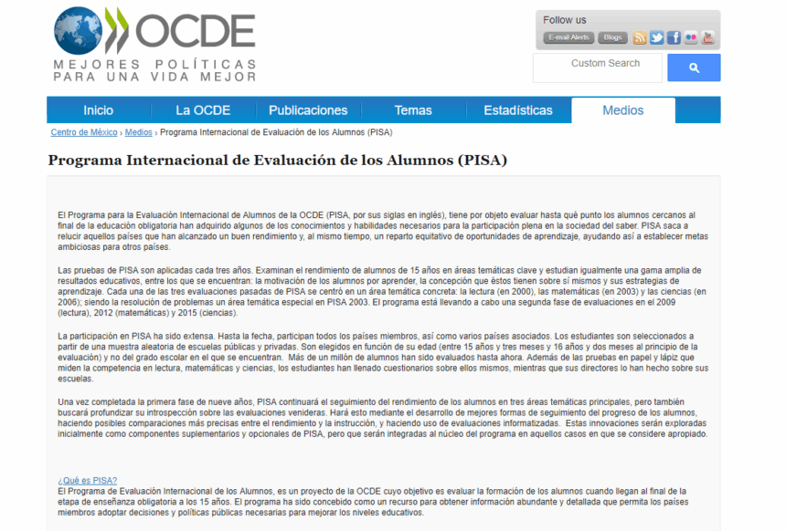 Se acaban de presentar los resultados de PISA o Programa para la evaluación PISA Internacional de los Alumnos. Realizado por la OCDE, es un instrumento que tiene por objeto evaluar, cada tres años, los conocimientos y destrezas adquiridos por los alumnos de 15 años en matemáticas, lectura y ciencias.