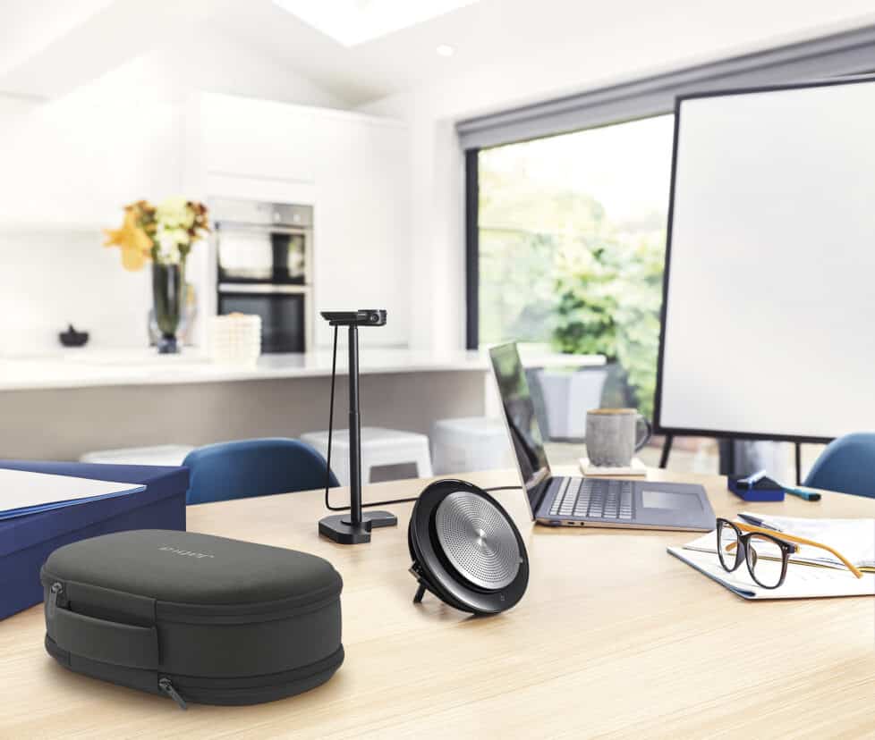 El pack Meet Anywhere de Jabra está compuesto por una cámara personal Panacast junto a su soporte de mesa y un altavoz Speak 750; dos dispositivos ideales para mejorar la calidad de las clases a distancia. Vienen además con una funda rígida que facilitará su transporte permitiendo que realmente se pueda participar en una clase desde cualquier ubicación.